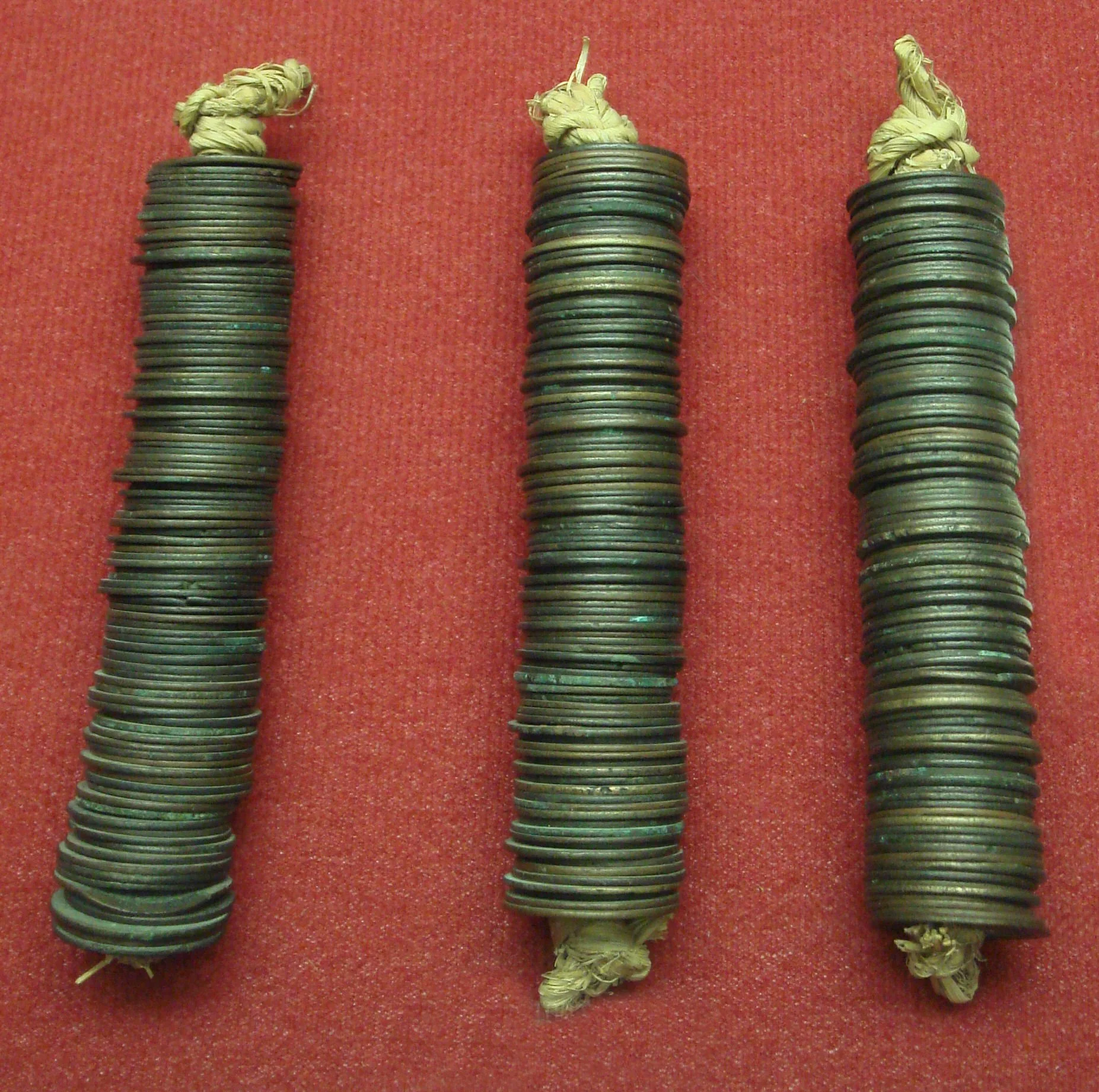 These strung coins were also used as good luck charms, the square of the hold representing Earth and the round coin itself representing sky. The mon coins were cast in copper or iron, and were eventually replaced by the yen.