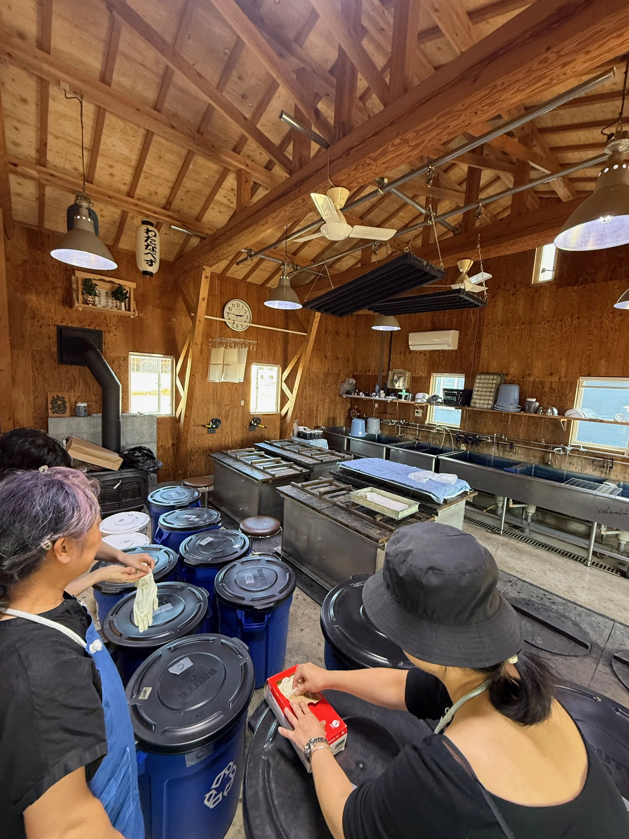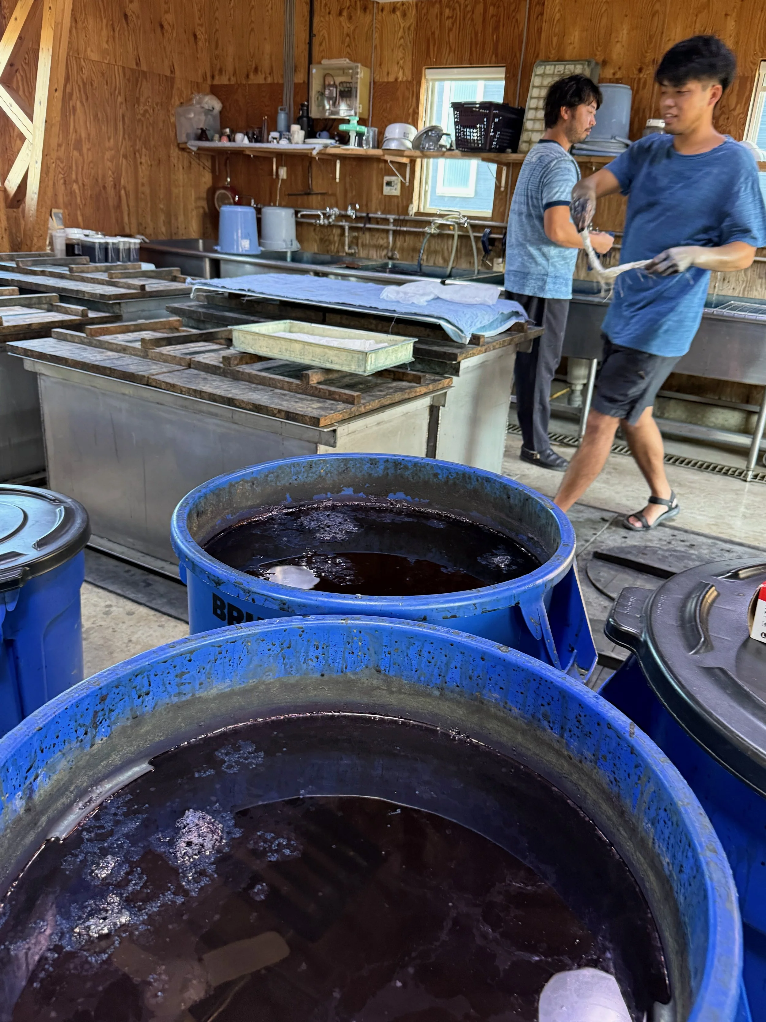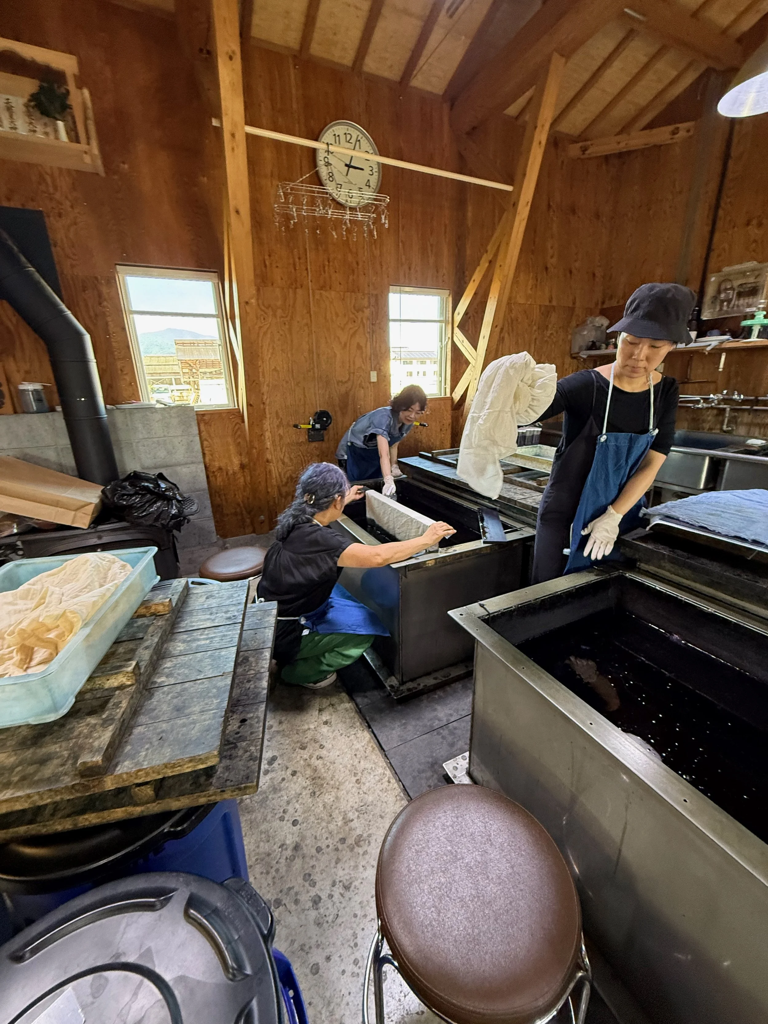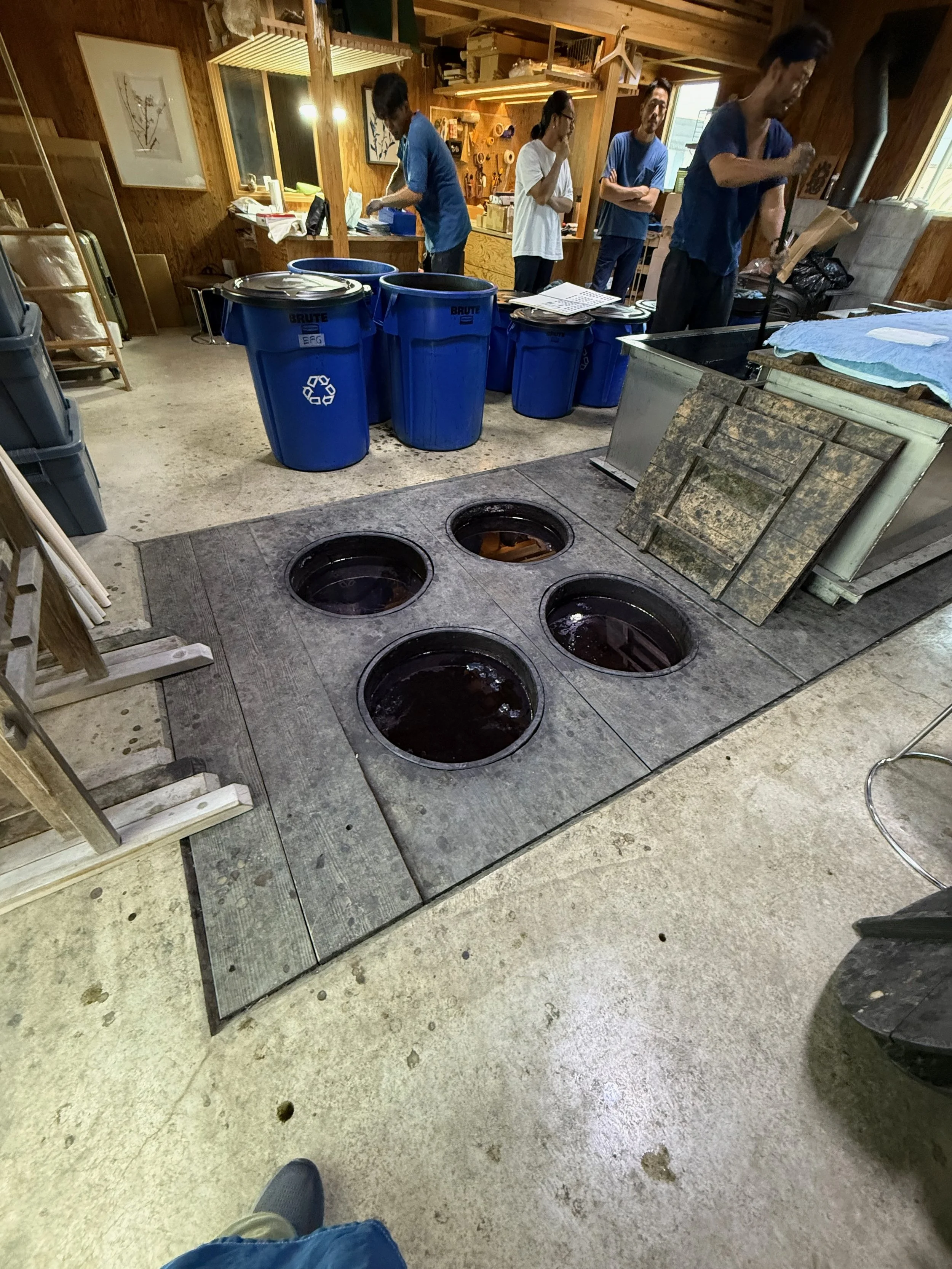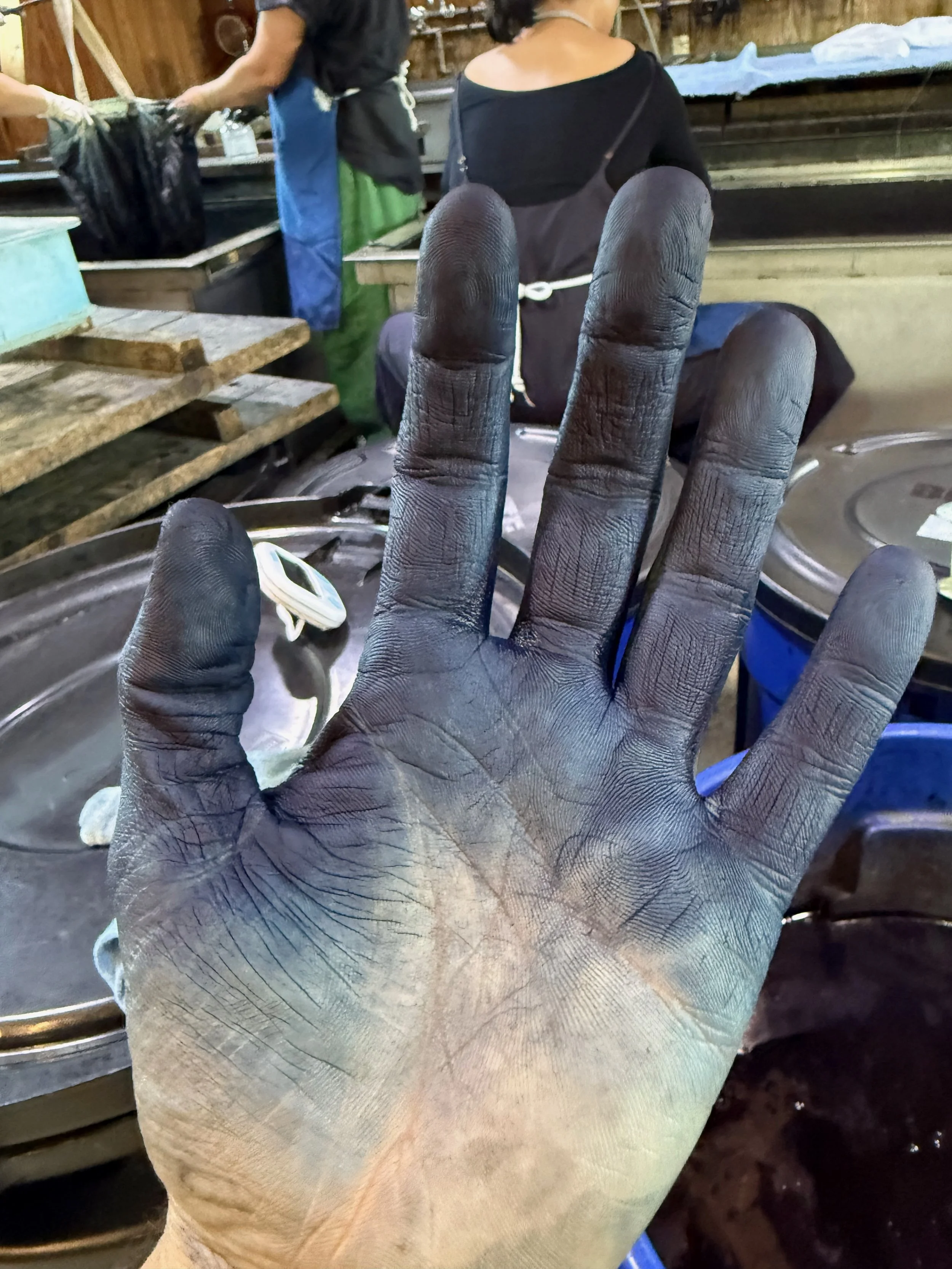I was also appreciative to see their Sukumo making warehouse. I have been taking an online course through Awonoyoh to learn how to make Sukumo- from seed to dye. I have been successful at growing Indigo, but the scale of the amount of dried Indigo needed to complete the Sukumo has been daunting. It’s nice to see the special set up at Watanabes and have a better understanding of the final steps.